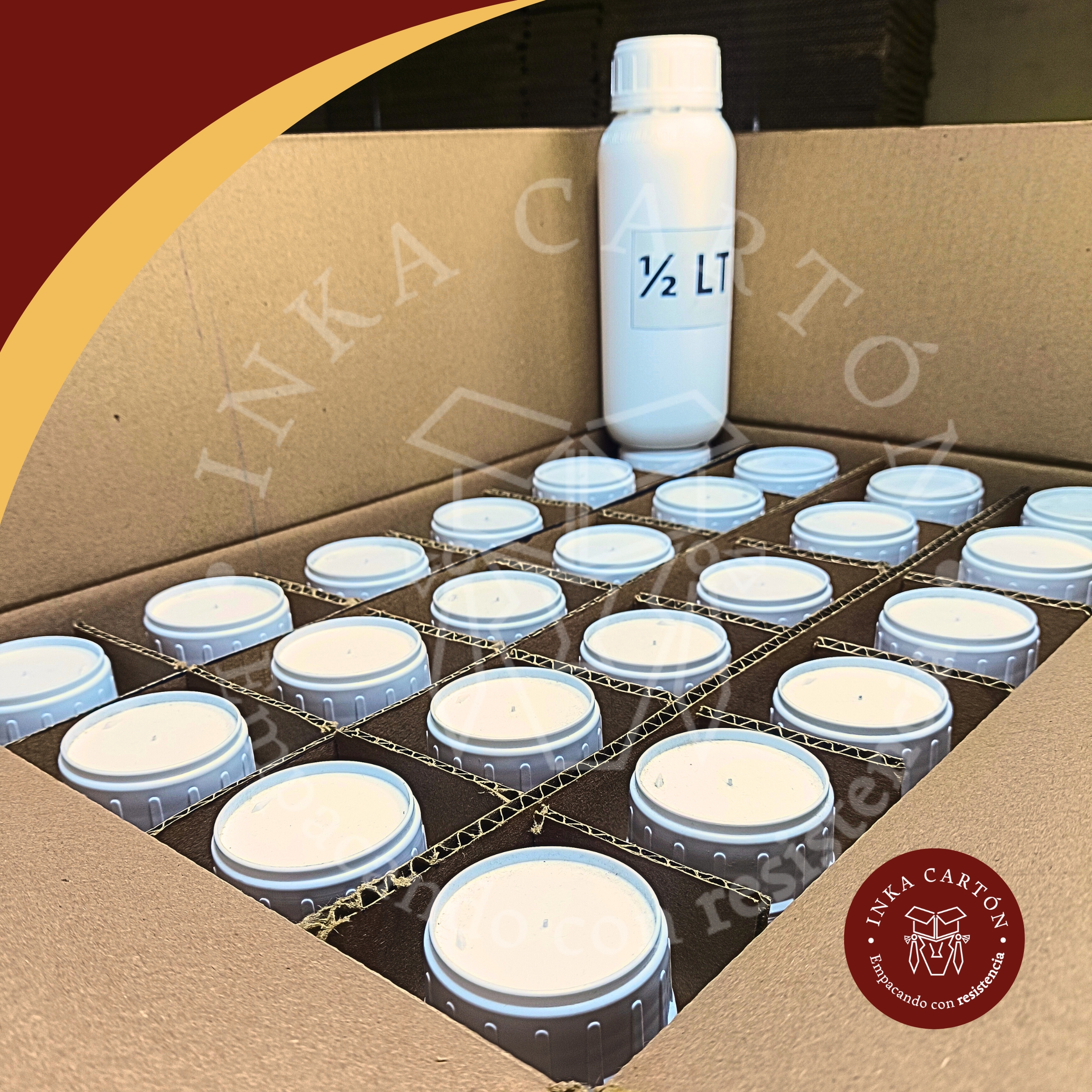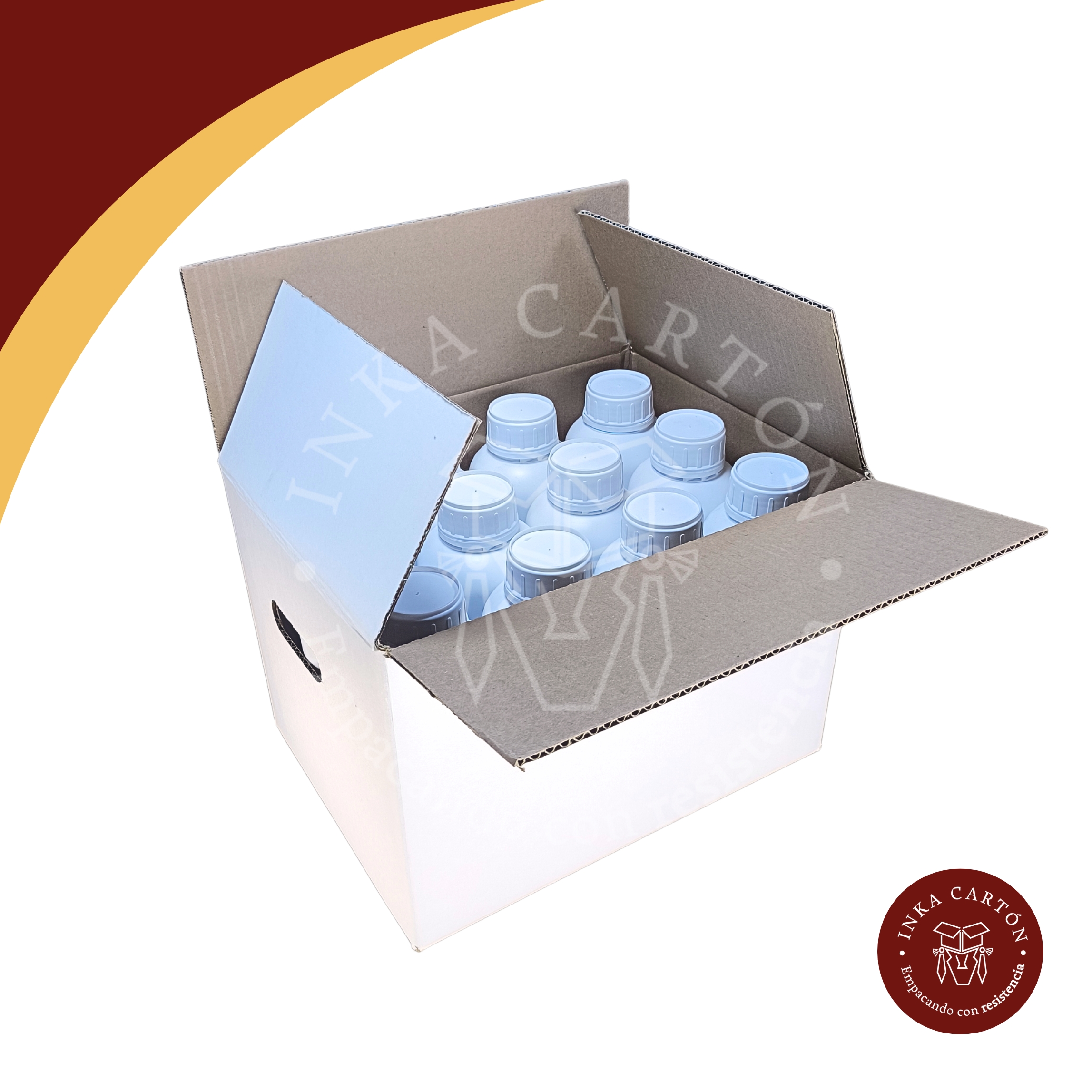 - ▸ Cajas para 20 frascos de 1 litro